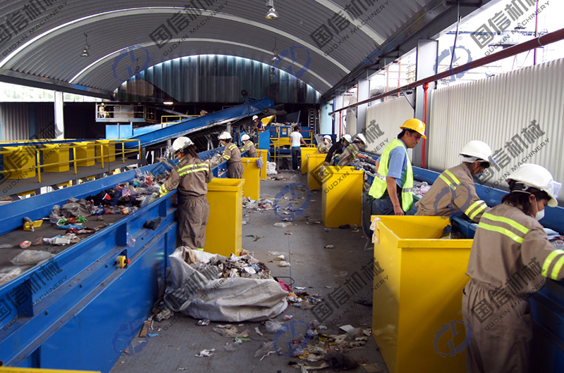 垃圾處理整套生產(chǎn)線是由給料機、輸送機、滾筒篩分機、棒條篩、滾軸篩、除鐵器、風(fēng)選機、破碎機、打包機等設(shè)備靈活搭配使用,實現(xiàn)腐殖土的回埋處理,輕質(zhì)可燃物壓縮外運焚燒處理,無機骨料篩分破碎做建筑原料處理。