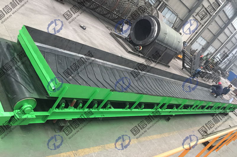 3、破袋之后的垃圾由皮帶輸送機送進(jìn)滾筒篩分機中進(jìn)行處理,篩選出有機物質(zhì),有機物經(jīng)過懸掛式的磁選機設(shè)備篩選出鐵制物。