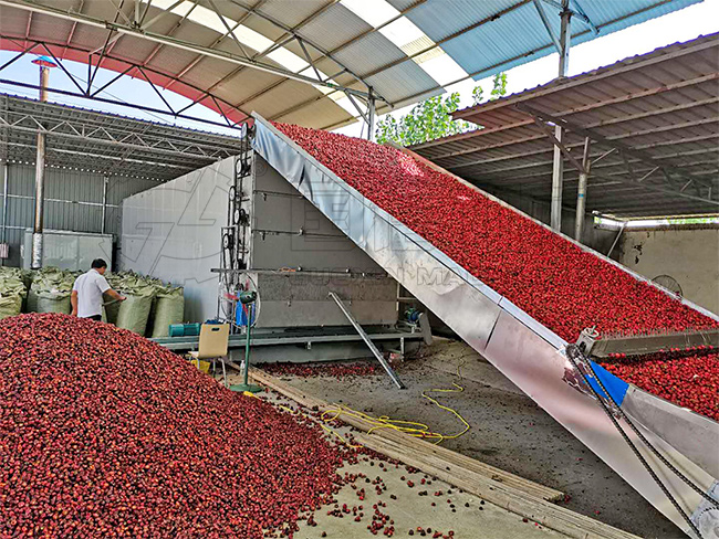 干燥面積、風(fēng)壓、風(fēng)量、干燥溫度網(wǎng)帶運(yùn)轉(zhuǎn)速度均可調(diào)節(jié),以適應(yīng)蔬菜的特性及品質(zhì)要求??筛鶕?jù)蔬菜特點(diǎn),采用不同的工藝流程及添加配套必要的輔助設(shè)備。