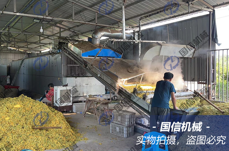 大型金銀花全自動(dòng)網(wǎng)帶式烘干機(jī),是我們廠家根據(jù)用戶(hù)大產(chǎn)量金銀花烘干的產(chǎn)量需求設(shè)計(jì)研發(fā)的,可以實(shí)現(xiàn)單臺(tái)日烘干處理鮮金銀花兩噸到幾十噸的加工需求,實(shí)現(xiàn)金銀花的自動(dòng)化大批量連續(xù)式烘干作業(yè),非常適合大面積金銀花種植客戶(hù)、農(nóng)業(yè)合作社、以及大型藥材加工廠使用。