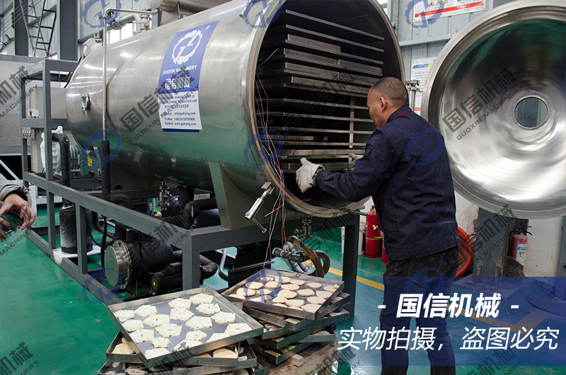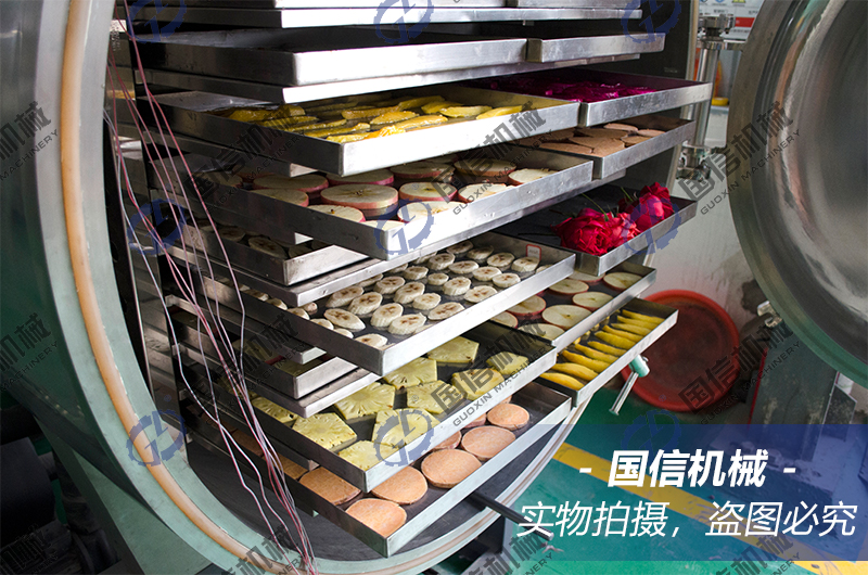 導(dǎo)讀:國(guó)信機(jī)械生產(chǎn)的果蔬真空冷凍干燥機(jī),是在真空狀態(tài)下,利用升華原理,使預(yù)先凍結(jié)的果蔬中的水分不經(jīng)過冰的融化直接以冰態(tài)升華為水蒸汽被除去,從而使果蔬干燥,避免了傳統(tǒng)脫水技術(shù)方法帶來(lái)的變色、變味、營(yíng)養(yǎng)成分損失大、復(fù)水性差等缺陷,大限度的保持原料果蔬的外觀品質(zhì)和營(yíng)養(yǎng)價(jià)值;并具有保持原食品的色、香、 味、營(yíng)養(yǎng)不變、復(fù)水性好、重量輕、可常溫貯藏等優(yōu)點(diǎn)。