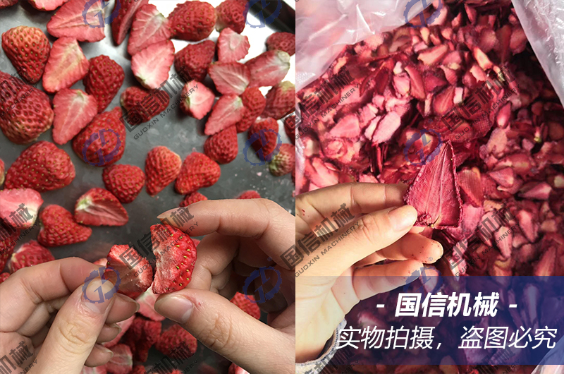 凍干水果由于是升華脫水,水果的水分由冰凍狀態(tài)直接轉(zhuǎn)化為水蒸氣,相對(duì)于烘干對(duì)植物框架(細(xì)胞壁)影響小一些。烘干的會(huì)癟一些