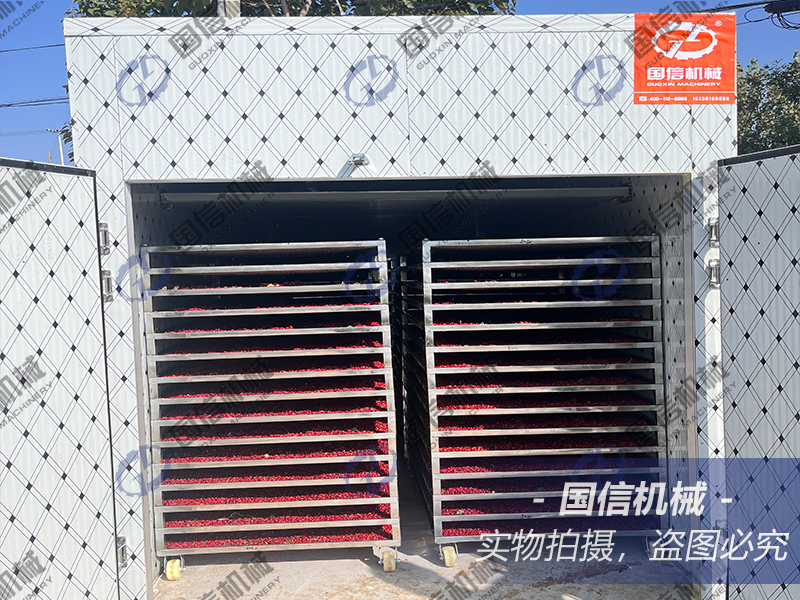 第一階段:啟動(dòng)山茱萸烘干機(jī),設(shè)置溫度在40℃左右,熱風(fēng)下烘干2小時(shí);