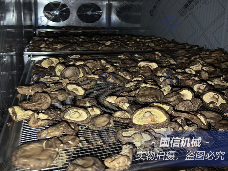 5、完全烘干期:較后1個小時,溫度應(yīng)控制在60~65℃,進(jìn)排氣孔全部關(guān)閉,回溫孔全部打開,使熱空氣上下循環(huán),能夠保證菌褶和顏色并增加香氣。