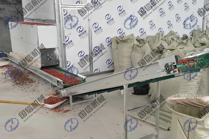 為保證客戶的正常烘干需求,我們配置的是一套9米4層的大型不銹鋼辣椒烘干機(jī),每天可以生產(chǎn)辣椒干貨1.5噸以上,而且品級非常高。食品級的不銹鋼辣椒烘干機(jī)的應(yīng)用,使烘干加工的辣椒可以直接提供給食品加工廠。由于生產(chǎn)出的辣椒干貨品質(zhì)好,品級高,因此價格方面也比其他加工商的高出許多,既增加了加工商的收入,也提高了辣椒種植戶的收益,還促進(jìn)了當(dāng)?shù)乩苯芳庸ぎa(chǎn)業(yè)的發(fā)展。