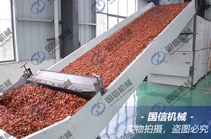 網(wǎng)帶式山楂烘干機(jī)解決了晾曬對天氣、對場地面積大的要求;同時解決了晾曬費(fèi)人工、質(zhì)量不穩(wěn)定等諸多弊端,從而大大降低了山楂烘干成本,實(shí)現(xiàn)了山楂干片的流水化生產(chǎn),同時也有效提升了山楂的加工品質(zhì)。